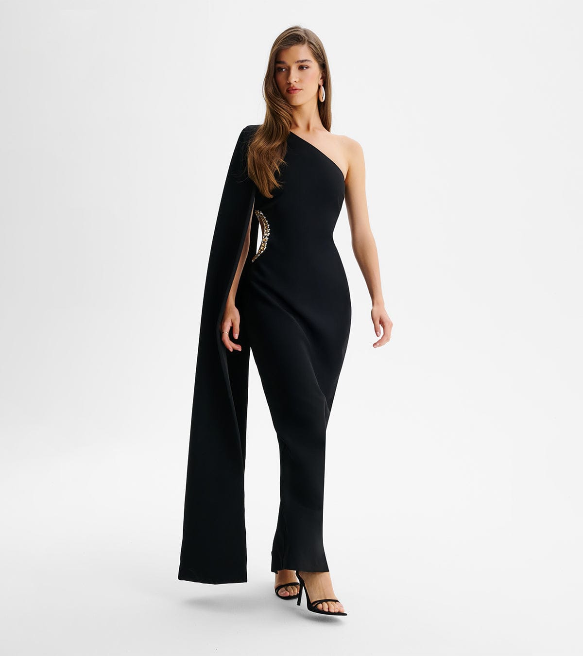 KADY Ombre Embellished One Shoulder Jumpsuit in BlackKADY Ombre Embellished One Shoulder Jumpsuit in Black