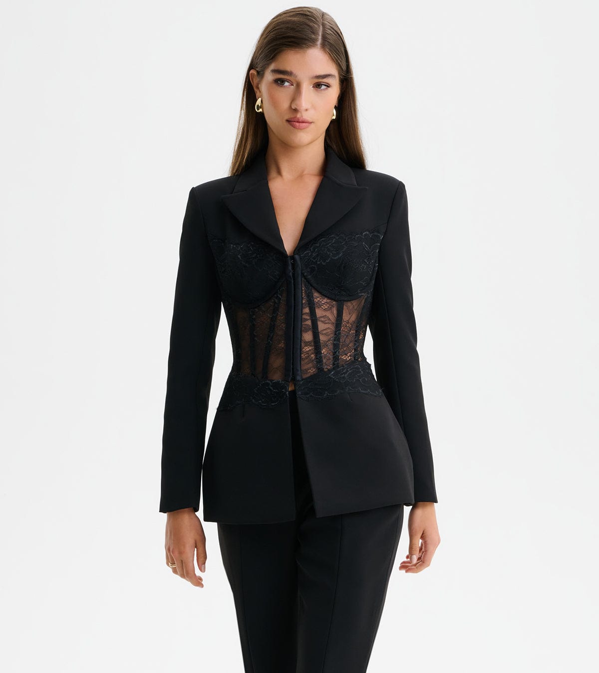 LOLA Ombre Embellished Hourglass Structured Blazer Mini Dress in Black